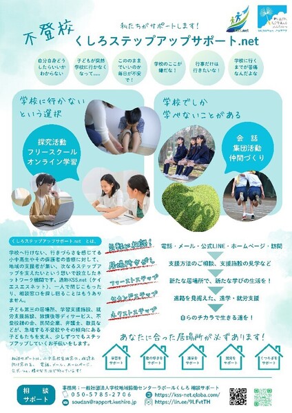 「くしろステップアップサポート.net」は、不登校や学習支援を必要とする子どもたちと、その保護者のための包括的な支援システムです。